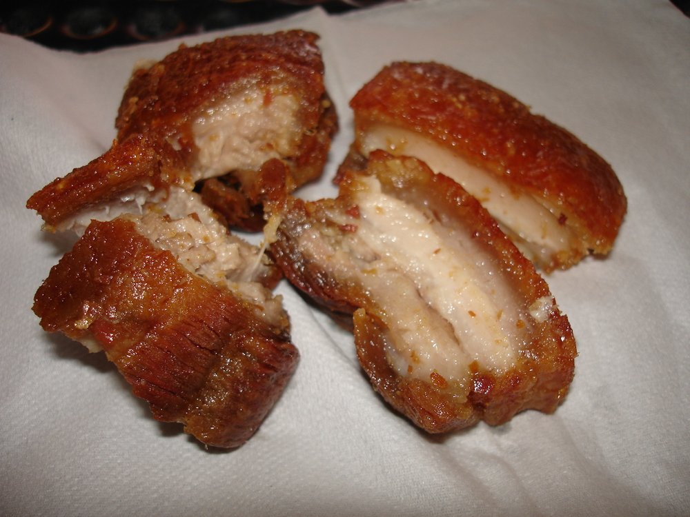 Chicharones de Carne – A fresh fried piece of very thick bacon that is tender and soft.